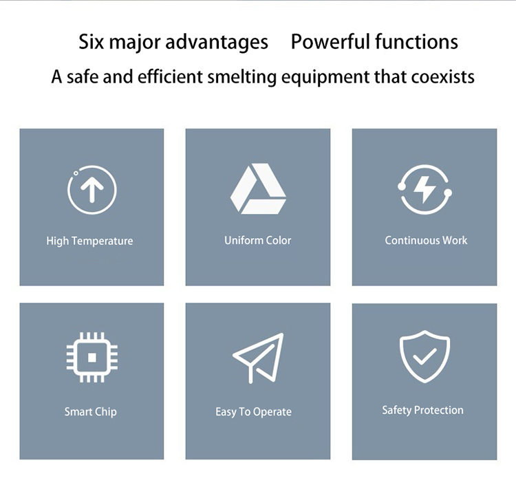 Melting with this electric gold furnace is efficient and fast enough to melt all metals within 2 to 4 minutes. The fast melting rate does not affect the quality of melting at all.