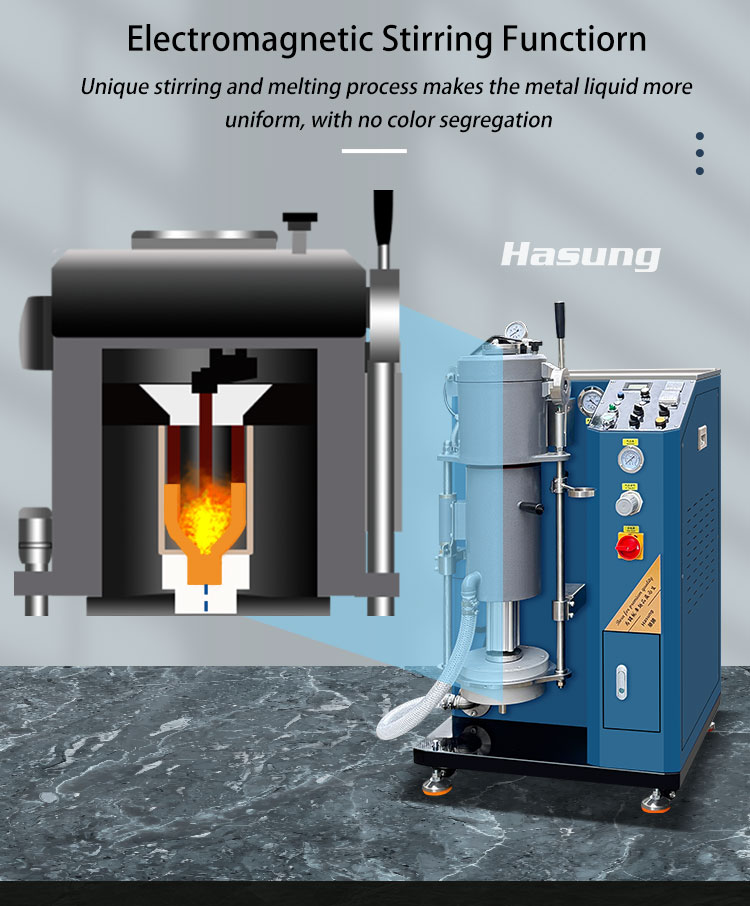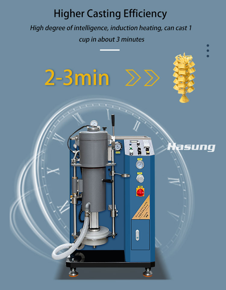 Hasung VC series vacuum pressure casting machines reach from small to large capacities, from semi-automatic systems to solutions for a fully automatic casting production. A lot of special features enable you to optimize each casting according to its individual characteristics. Generally, for gold silver jewellery casting purpose, the smallest capacity is from 1kg, 2kg, 3kg, 4kg up to 8kg, to maximum capacity such as 20kg or 30kg.