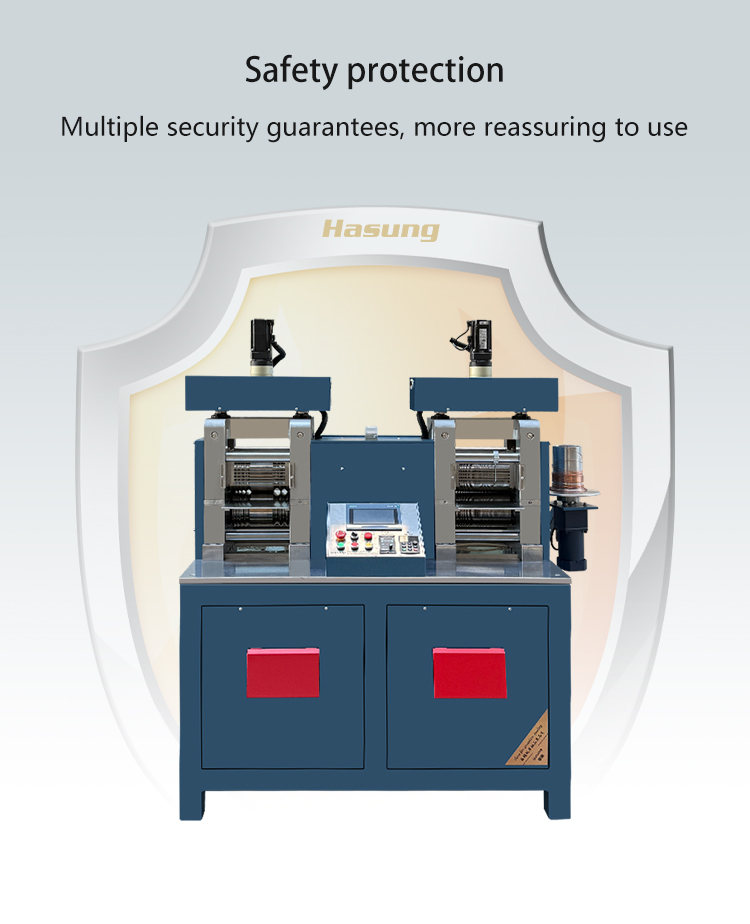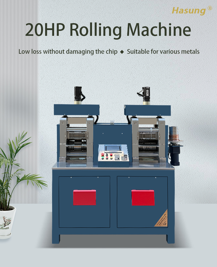 The equipment tablet station supports sheet rolling with a maximum smooth width of 90mm, which can meet the precision rolling and extension requirements of wide width precious metal sheets. The smooth roller design ensures high surface smoothness and uniform thickness of the sheet material, which can be directly used for jewelry pattern making and processing without the need for subsequent polishing; The servo numerical control system accurately controls the rolling accuracy and can achieve micrometer level thickness adjustment, adapting to customized production of different thickness sheets. At the same time, the 20 horsepower high-power servo ensures the stability of large-scale and thick sheet rolling, balancing production efficiency and product quality. One machine covers the two core rolling processes of square line and sheet, reducing costs and increasing efficiency.