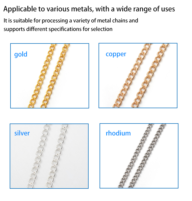 Applicable chain types: covering various mainstream chain styles such as side chains, O-chains, and whip chains, it can quickly switch molds according to needs to achieve flexible production of multiple categories.