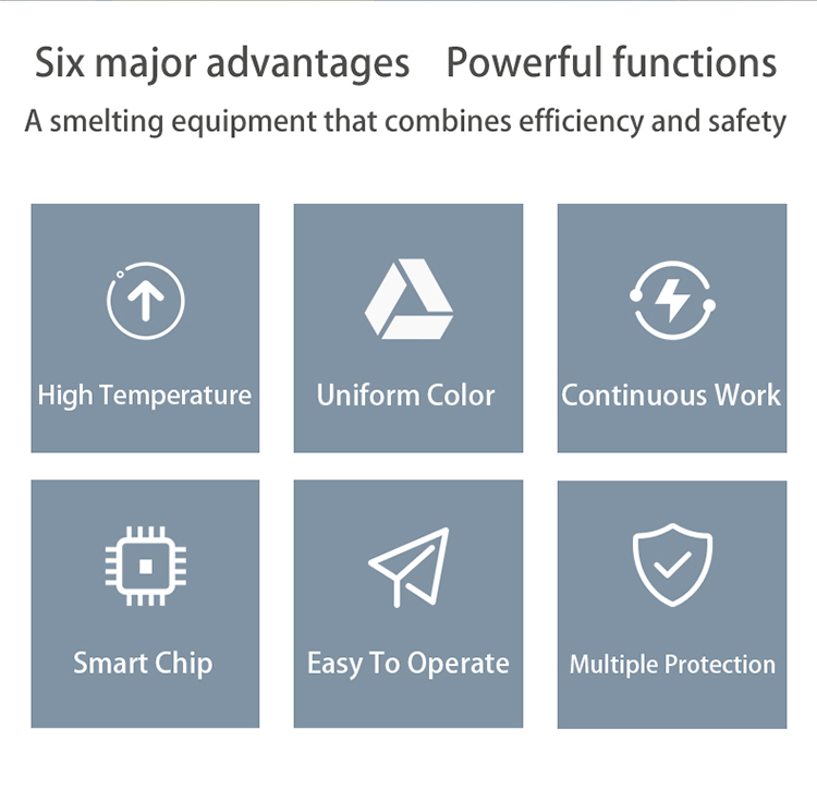 Melting with this electric gold furnace is efficient and fast enough to melt all metals within 2 to 4 minutes. The fast melting rate does not affect the quality of melting at all.