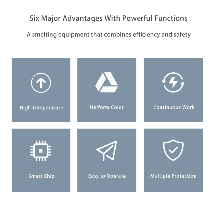 Melting with this electric gold furnace is efficient and fast enough to melt all metals within 2 to 4 minutes. The fast melting rate does not affect the quality of melting at all.