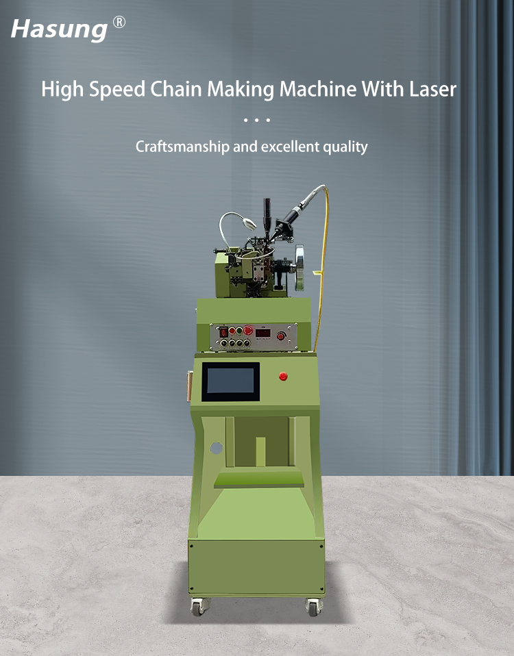 The Hasung Laser High-Speed Chain Welding Machine is a professional chain welding device that integrates precision mechanical design, laser technology, and intelligent control, specifically designed for efficient production in industries such as jewelry and hardware chains.
