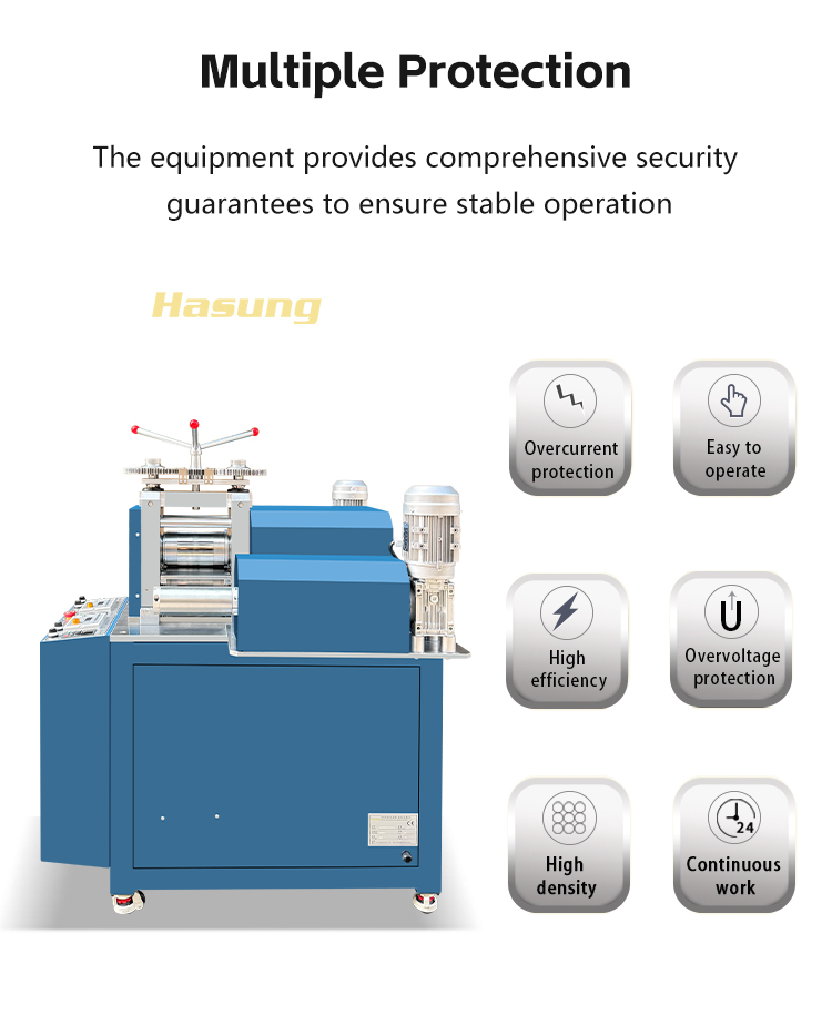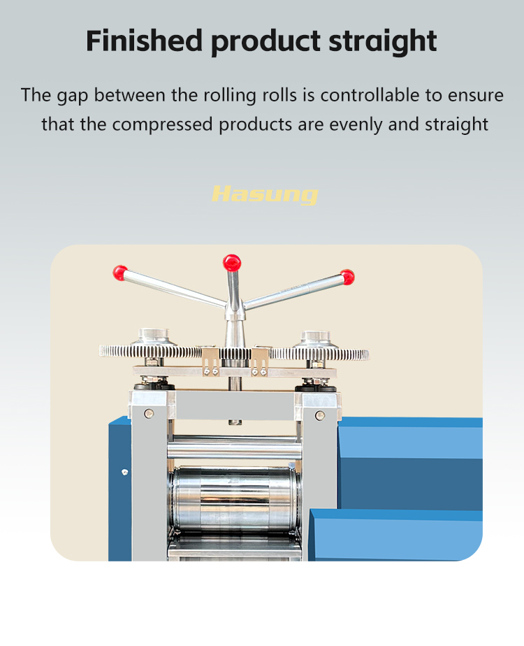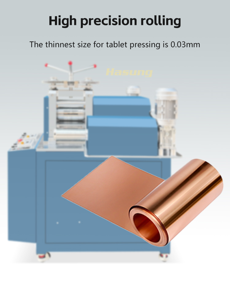 The Hasung tungsten steel rolling mill adopts 92-95 ° HRC high hardness tungsten steel rollers, with a sturdy and wear-resistant structure, which can efficiently process precious metals such as gold, silver, platinum, and alloys. The core equipment for precision machining is capable of rolling materials to an ultra-thin specification of 0.03mm, with zero oxidation and loss throughout the entire processing process, perfectly preserving the value of precious metals.