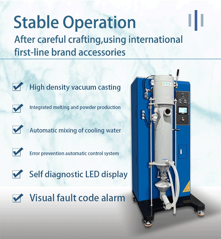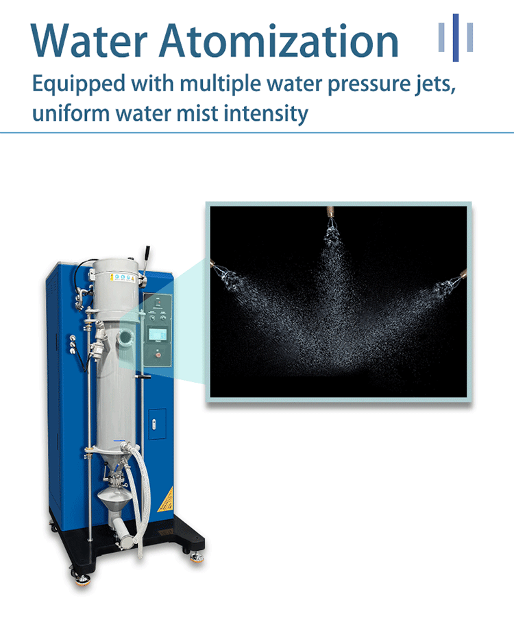 Post-processing part: powder collecting box: used to collect the atomized alloy powder and separate and remove excess water; drying furnace: dry the wet alloy powder with water; screening machine: sieve the alloy powder, Out-of-specification coarser alloy powders can be re-melted and atomized as return material.